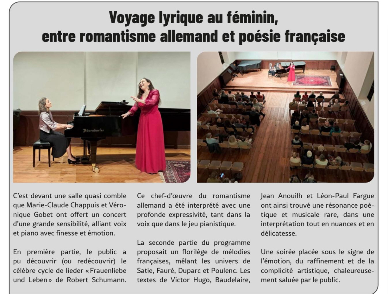 avec Marie-Claude Chappuis, mezzo-soprano et Véronique Gobet, piano